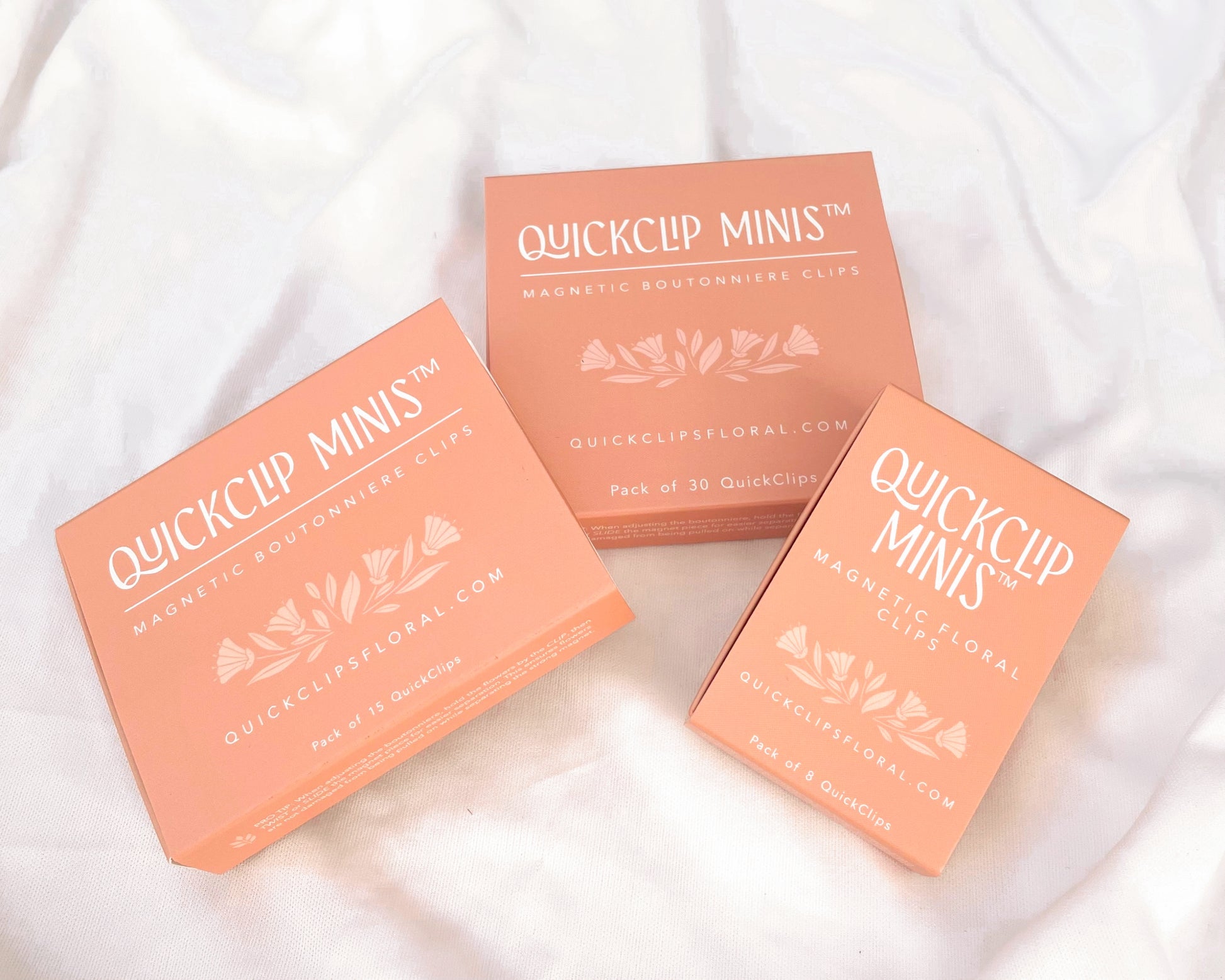 QuickClip Minis are the strongest magnetic boutonniere clips for their size! Our QuickClip Minis are our most cost-effective magnetic boutonniere clip paired with our most discreet, minimal design! They are the perfect floral accessory to make your boutonnieres more seamlessly user-friendly, beautiful, and unique!