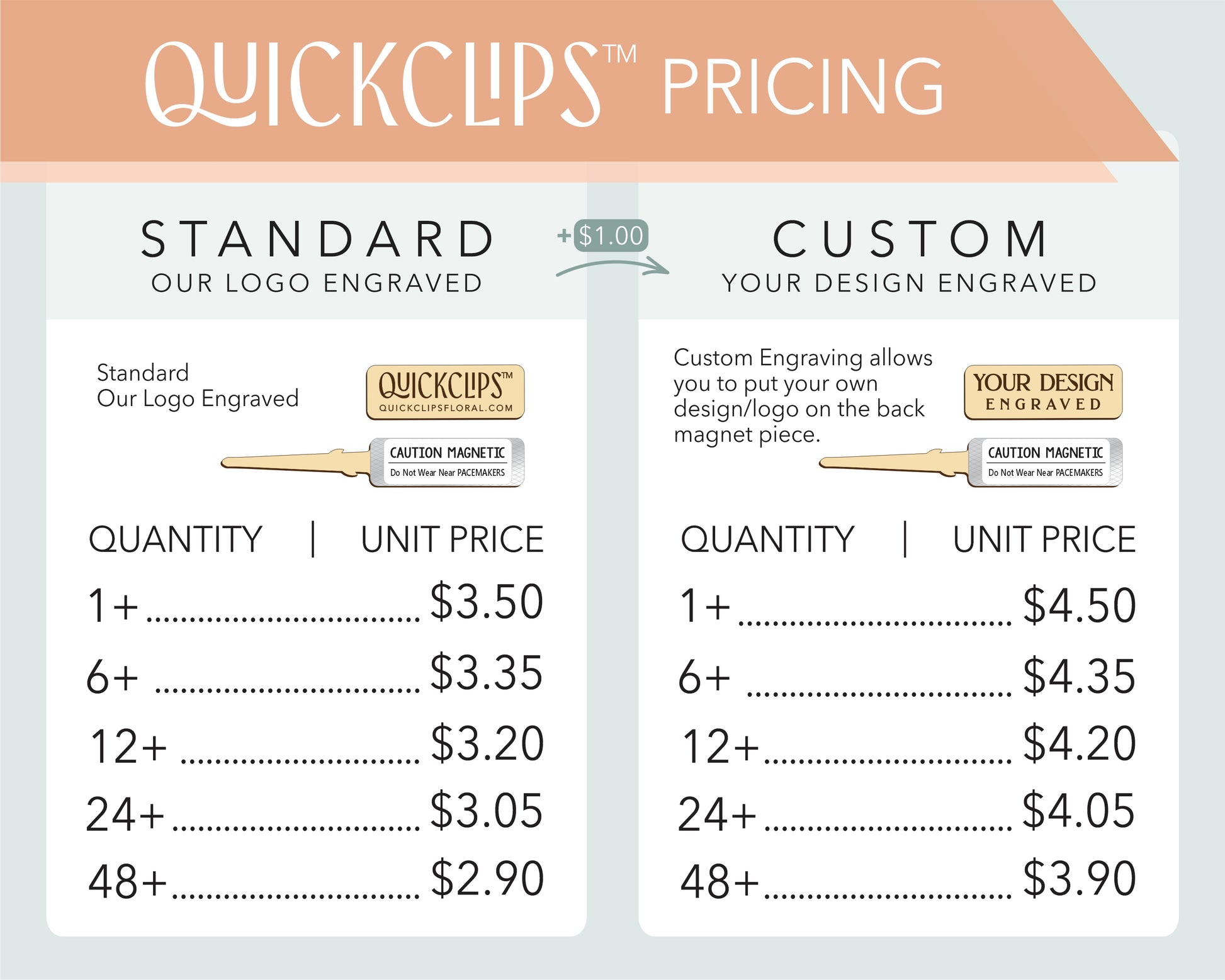 Custom Engraved QuickClips are the best magnetic boutonniere clips out there for Florists wanting to upgrade their marketing and presentation! They are the perfect floral accessory to make your boutonnieres more seamlessly user-friendly, beautiful, and unique!
